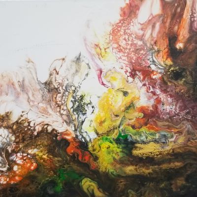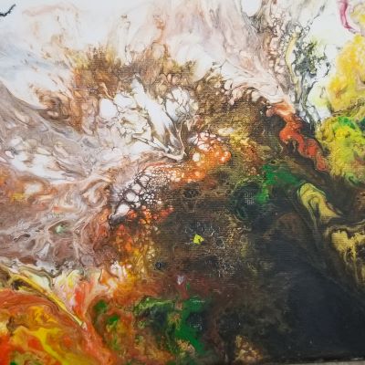 Acrylic pour on a white background in autumn shades 300 x 225 x 15 mm