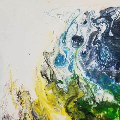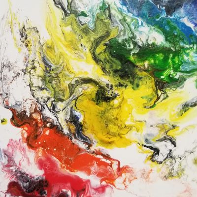 Acrylic pour in the Dutch pour style. This picture uses the progression through the chakra colours.  It would sit well in your healing or yoga room.