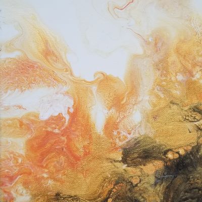 Lovely acrylic pour in gold, orange and black on a white background.  A beautiful image to grace any decor.