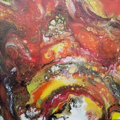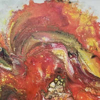 Acrylic pour on a white background in shades of red 300 x 225 x 15 mm