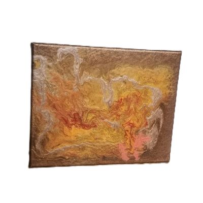 Pretty bronze, browns, reds and gold metallic acrylic pour canvas.  I can see a dragon in this canvas too.  Small size that could be displayed in a range of situations.