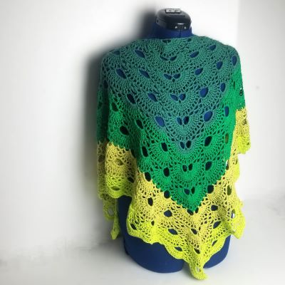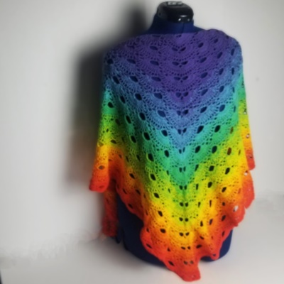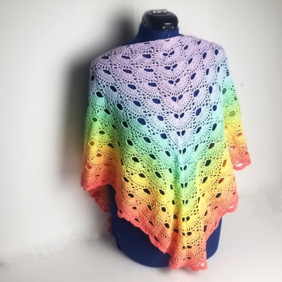 Lovely shawl made from cotton and hand crocheted.  Perfect for that bit of extra warmth.  Sizes may vary slightly between each piece.  Average size is  150 cm on the long edge with a 72 cm drop.