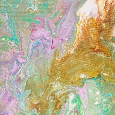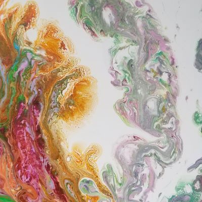 Dutch pour canvas on a white background multi coloured flow 595 x 420 x 15 mm