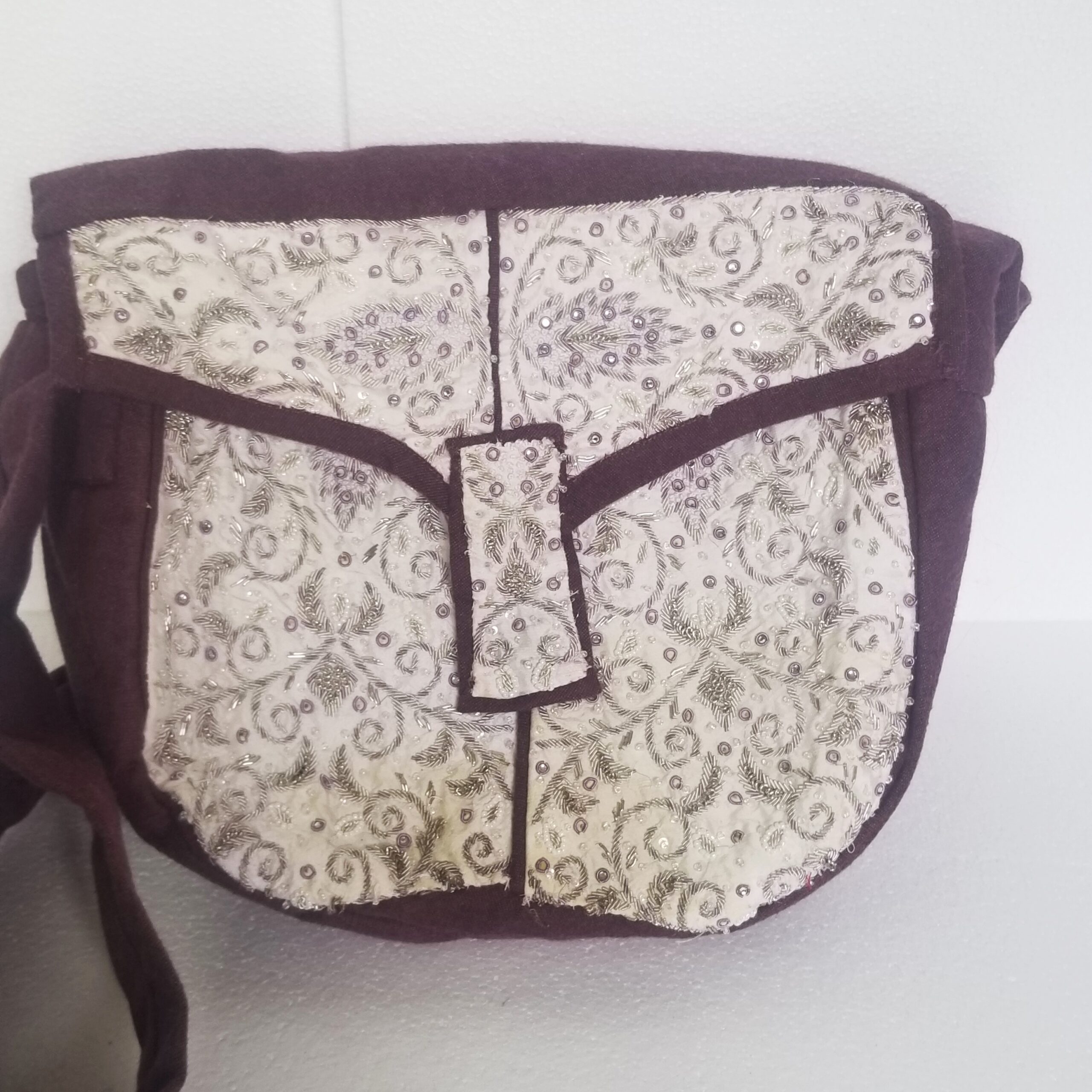 Lovely soft shoulder bag with pretty beaded and wired front panel decoration.