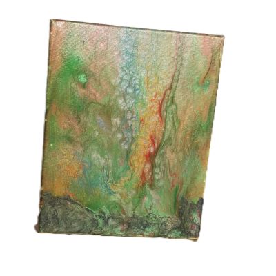 Light Green primarily in multicoloured metallic acrylic pour canvas.  200 x 250 x 15 mm