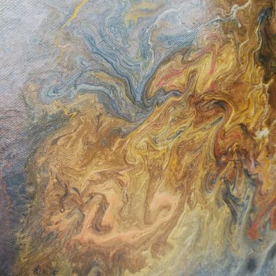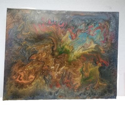 Lovely depth in the mixed colours in this metallic acrylic pour.  Deeper colours that change with the light.