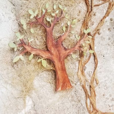 Natural tones in mixed media for this canvas called 'Trees' which feature three trees in different tones. A beautiful piece that would fit in many situations.