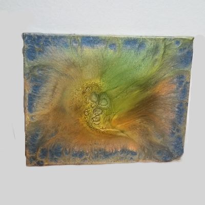 Very pretty canvas called 'Vortex' in mixed colours of metallic acrylic pours.  A very unusual picture that would draw attention in any position. 200 x 260 x 17 mm